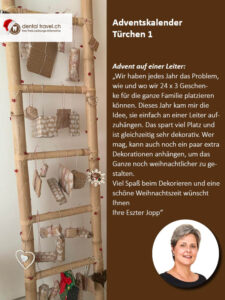 Jeden Tag eine Überraschung für Sie! Heute startet unser Dental Travel Adventskalender 2020. In diesem Jahr ist er prall gefüllt mit tollen Ideen für die Weihnachtszeit. Freuen Sie sich auf jede Menge Geschenke- und Dekotipps sowie Lieblingsrezepte von unseren Dental Travel Kolleginnen und Kollegen, die Sie bei dieser Gelegenheit auch gleich etwas besser kennenlernen. Los geht´s heute am 1. Dezember mit einer pfiffigen Idee von Dental Travel Gründerin und Geschäftsführerin Eszter Jopp: