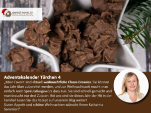 Heute verbirgt sich hinter dem vierten Türchen unseres Dental Travel Adventskalenders ein leckeres Rezept von unserer Kollegin Katharina Semmler. Sie arbeitet bei uns im Expertenteam und ist Ihre Ansprechpartnerin rund um Ihre Zahnbehandlung in Ungarn. Ihre Aufgabe ist es, Sie mit ihrem Expertenwissen zu beraten.