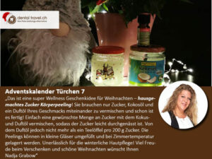 Hinter dem siebten Türchen unseres Dental Travel Adventskalenders steckt eine tolle Geschenkidee von Nadja Grabow. Die gelernte Zahnarzthelferin ist bei uns im Expertenteam Ihre Ansprechpartnerin rund um Ihre Zahnbehandlung in Ungarn. Gern berät sie Sie mit ihrem Expertenwissen.